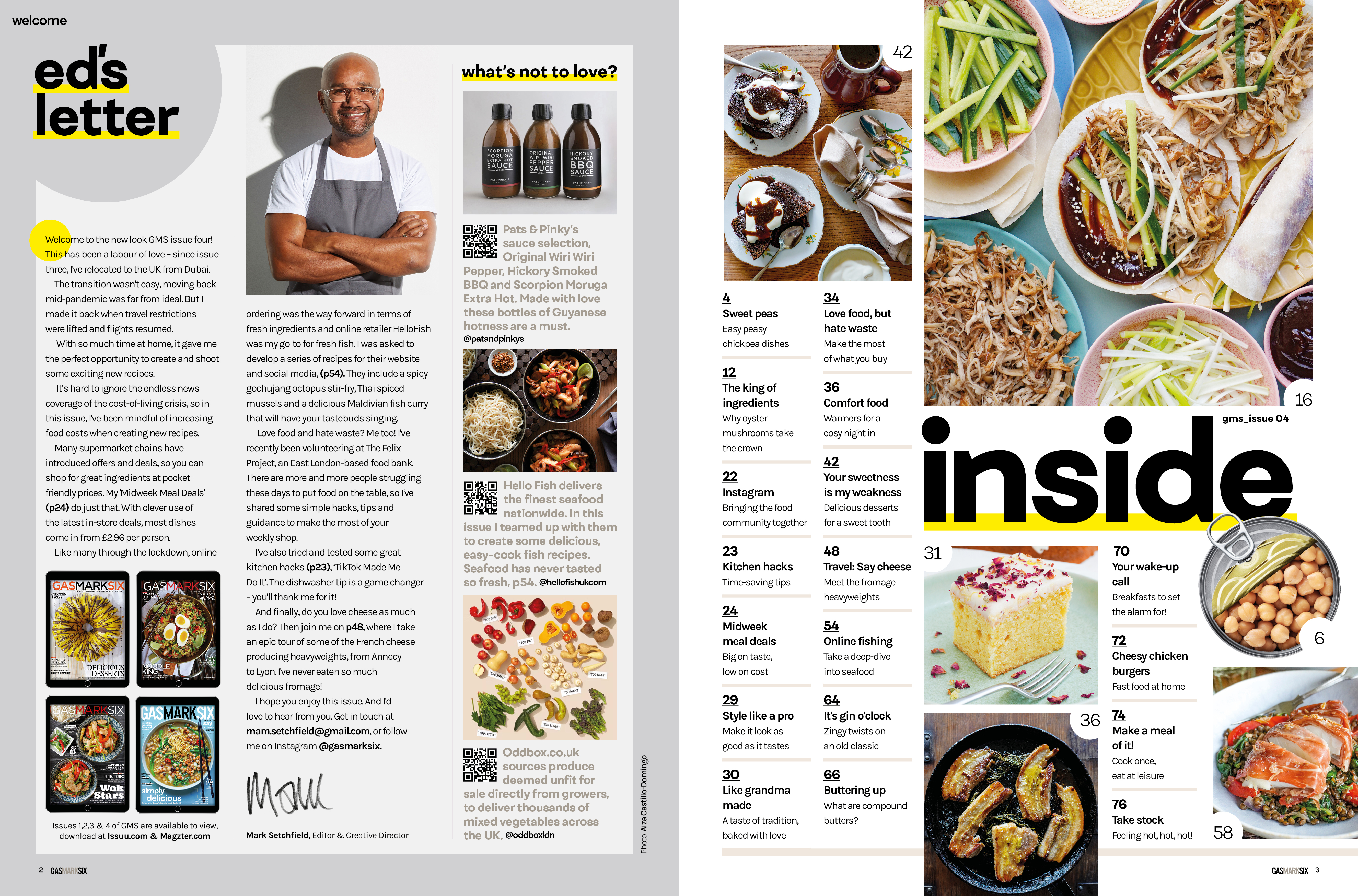 Welcome to the new look GMS issue four! This has been a labour of love – since issue three, I’ve relocated to the UK from Dubai. The transition wasn’t easy, moving back mid-pandemic was far from ideal. But I made it back when travel restrictions were lifted and flights resumed. With so much time at home, it gave me the perfect opportunity to create and shoot some exciting new recipes.